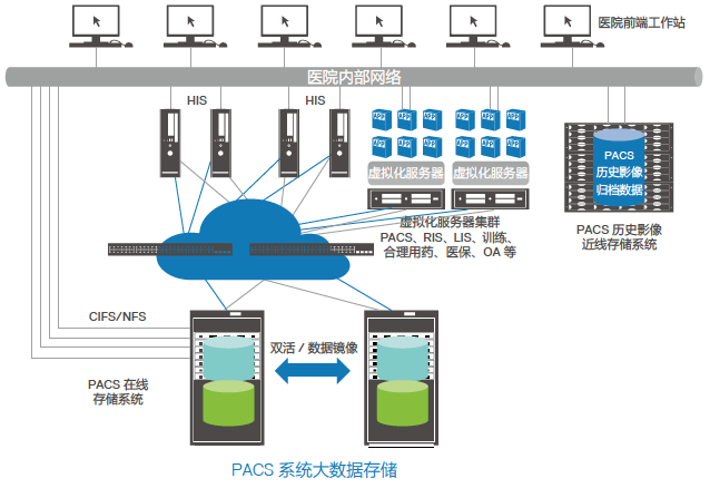 可靠保障:在线数据采用数据镜像技术或者双活技术,为 PACS在线影像数据给予保护;
